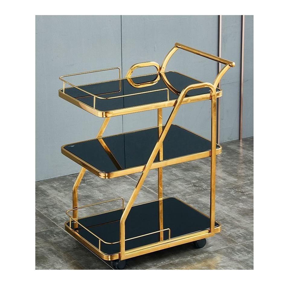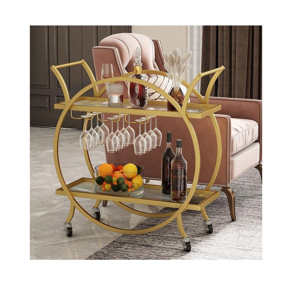 รถเข็นบาร์โลหะโครเมี่ยมพร้อมชั้นวางแก้วและล้อสำหรับห้องครัวห้องนั่งเล่นห้องรับประทานอาหารและบริการค็อกเทลที่ทันสมัย