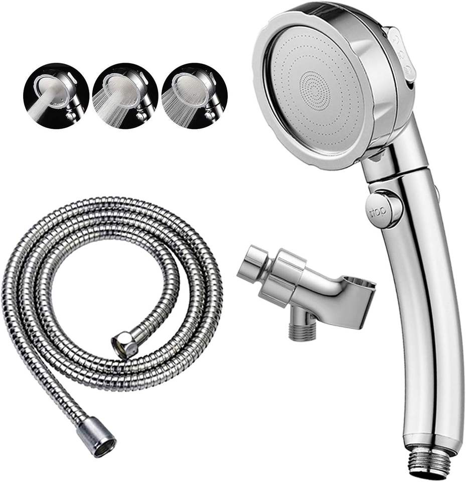 โครเมี่ยมหัวฝักบัวแบบมือถือแรงดันสูงสวิตช์เปิด/ปิดหยุดชั่วคราว3โหมดสเปรย์ท่อปรับมุมได้