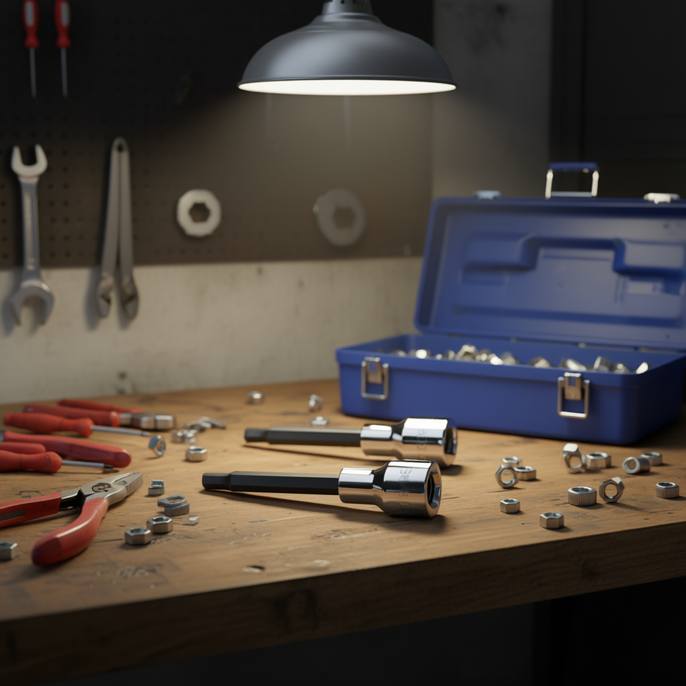 ประแจหกเหลี่ยมแบบสี่เหลี่ยมจัตุรัสขนาด 1/2 นิ้ว ชุบโครเมียม พร้อมหัวขัดเงา
