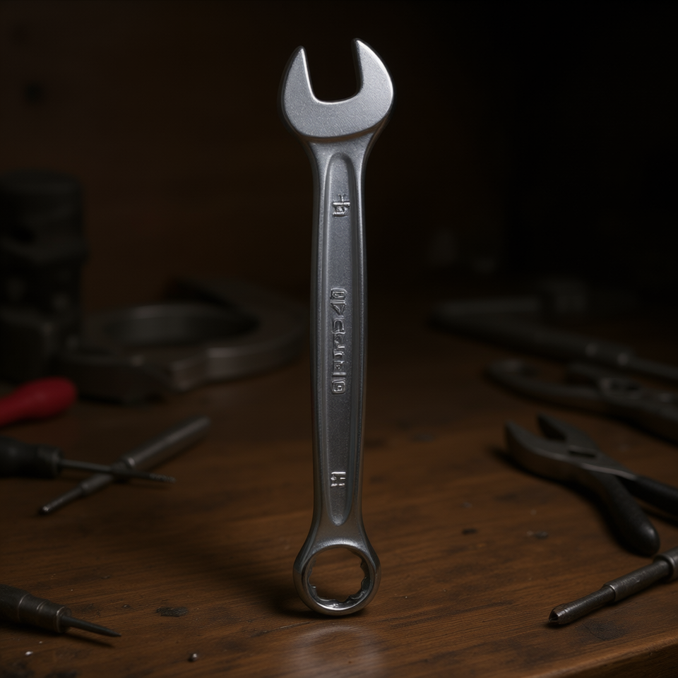 ประแจรวมแบบชุบโครเมียม พร้อมหัวเปิดและห่วงงอ