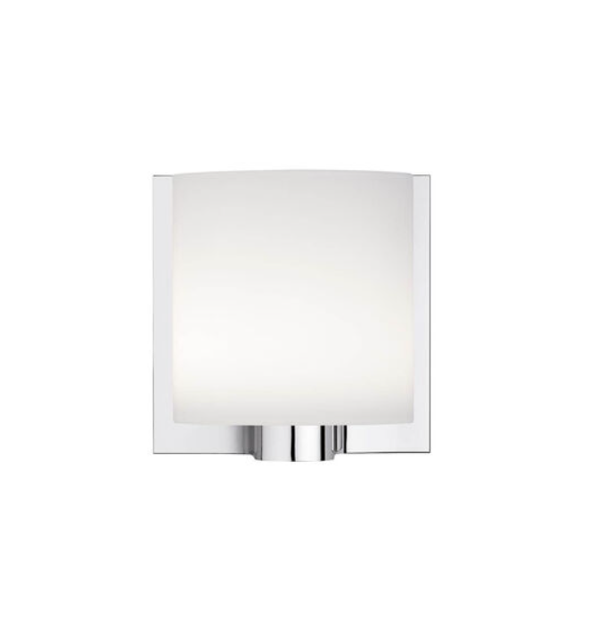 โคมไฟผนังเดี่ยวพร้อมโคมไฟแก้วสีขาวสำหรับห้องน้ำโรงแรมโคมไฟแก้วโครเมี่ยมทรงกลมดีไซน์แบบทรงกลม