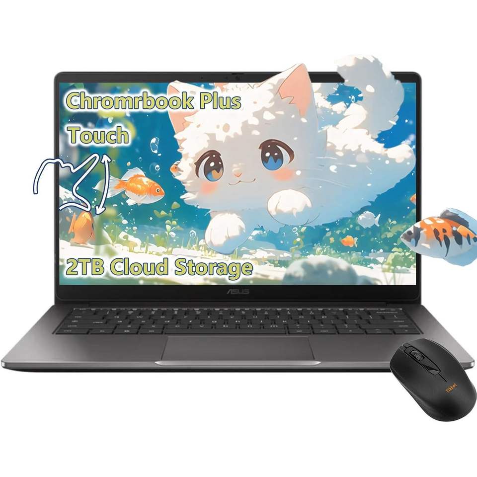 โครมบุ๊ค พลัส 14 นิ้ว หน้าจอสัมผัส FHD แล็ปท็อป Intel Core I3 แรม 8GB SSD 256GB ที่เก็บข้อมูลบนคลาวด์ 2TB สำหรับนักเรียน นักศึกษา พร้อมโปรเซสเซอร์ AI