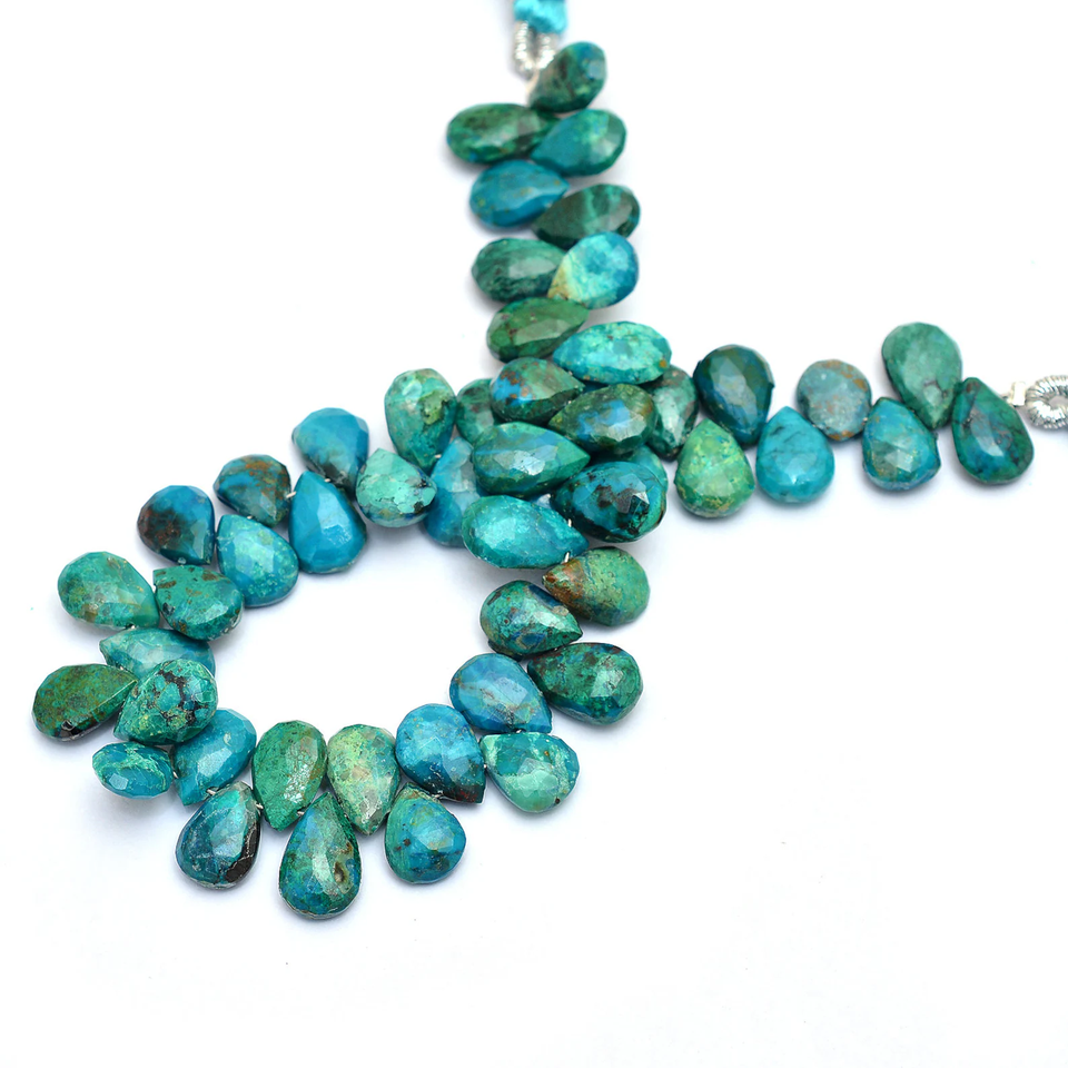 Chrysocolla ลูกแพร์พลอย7x10มม. ลูกปัดเหลี่ยมเพชรพลอยสังเคราะห์ chrysocolla จากธรรมชาติลูกปัดหลวมสำหรับการทำเครื่องประดับ