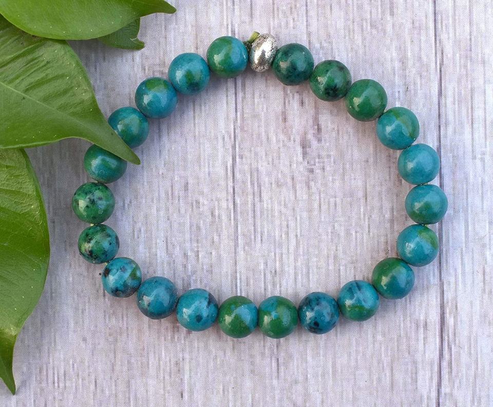 สร้อยข้อมือ Chrysocolla คริสตัลคริสตัลบำบัดตามธรรมชาติหินเรกิ