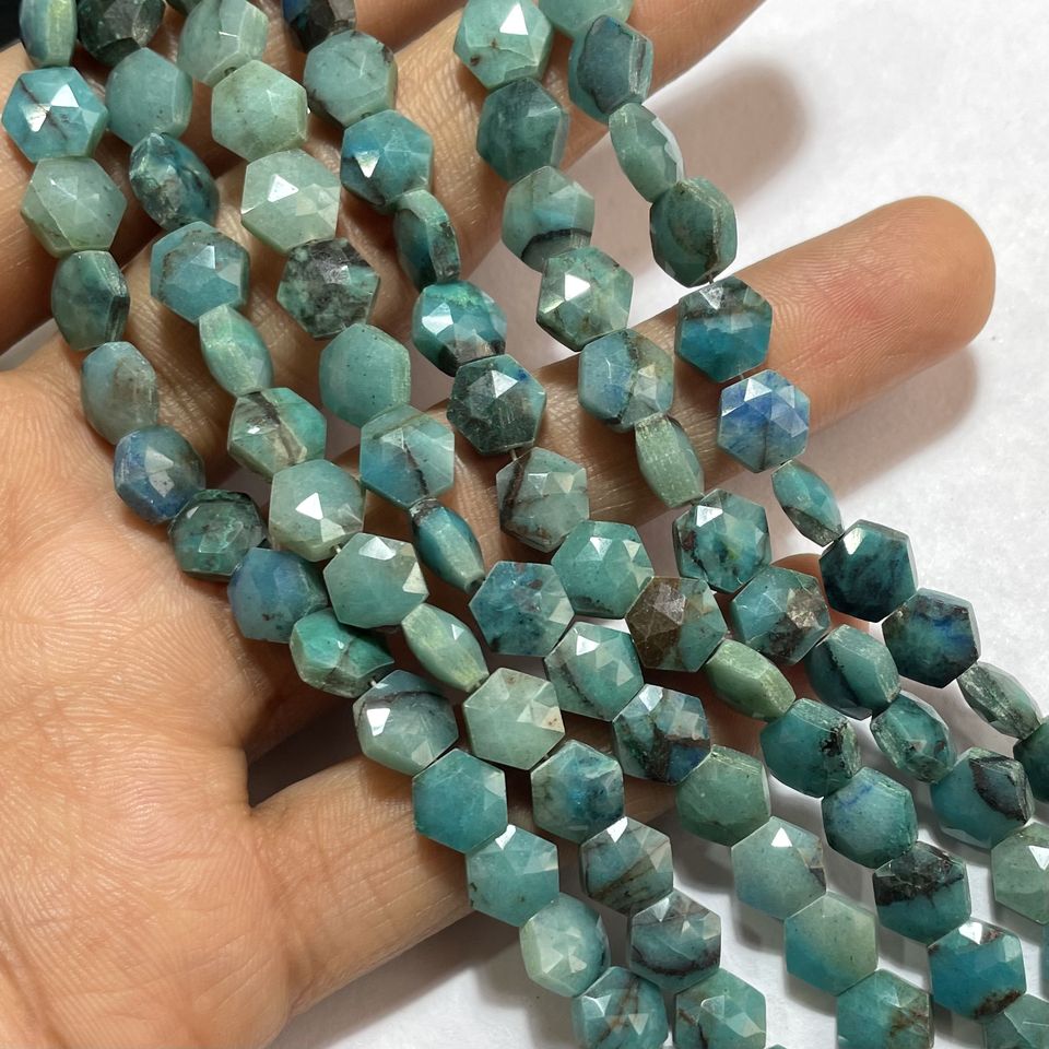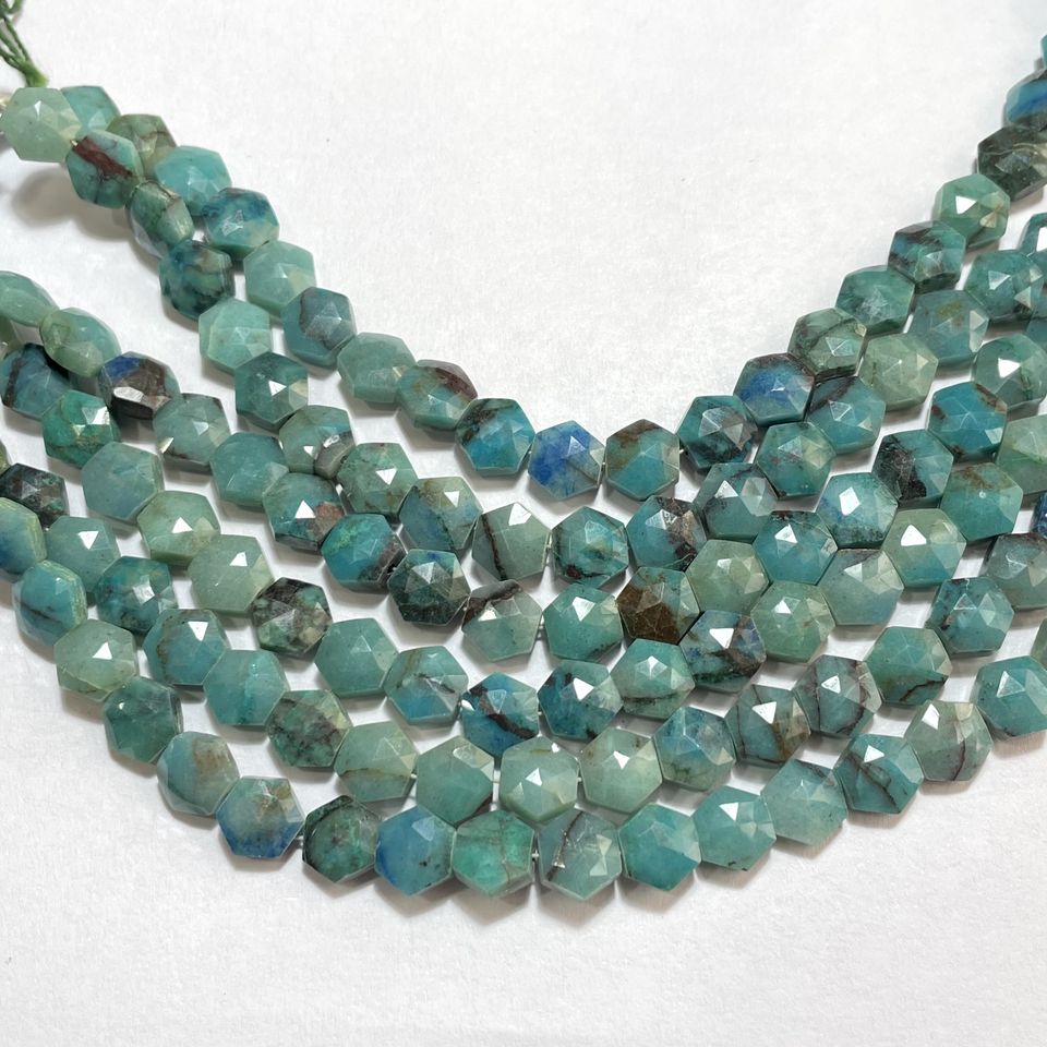 ลูกปัดหินคริสโซโคลลาทรงหกเหลี่ยมลูกปัดแฟนซีพลอยธรรมชาติขนาด8มม.