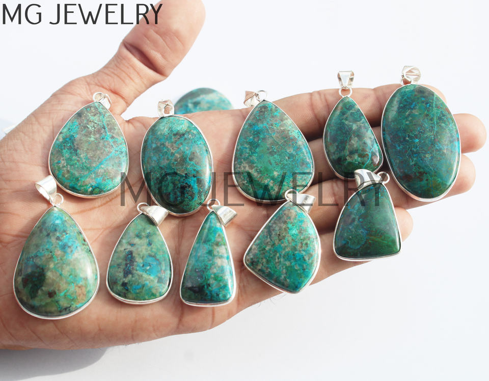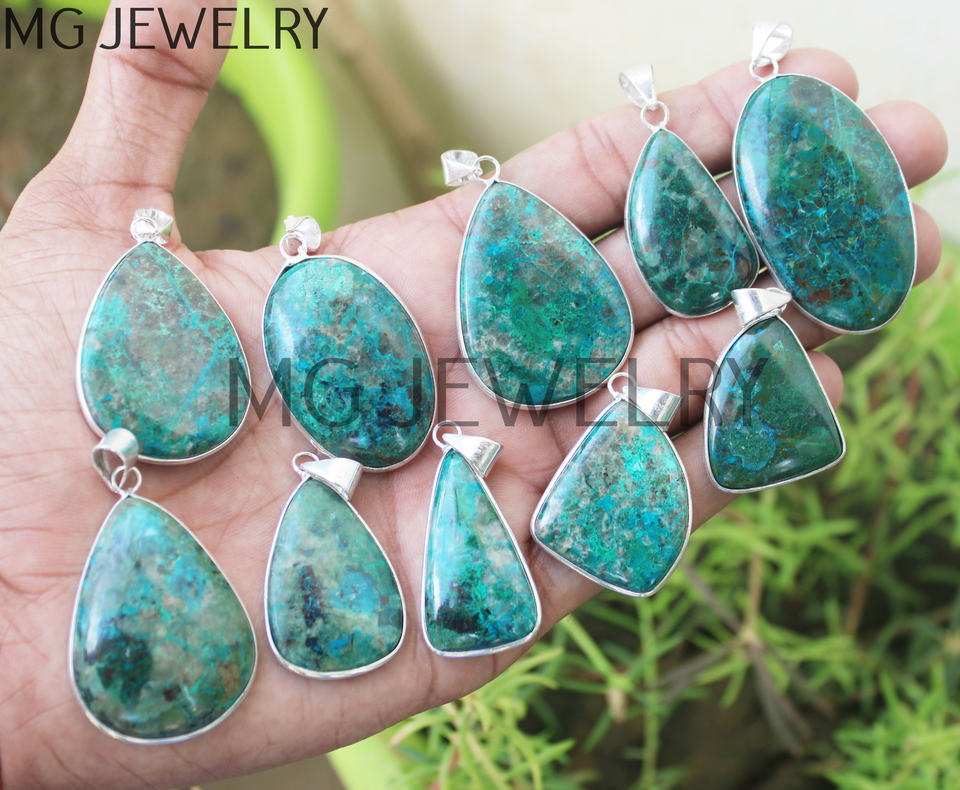 Chrysocolla จี้คริสตัลชุบเงินธรรมชาติจี้แฟชั่น