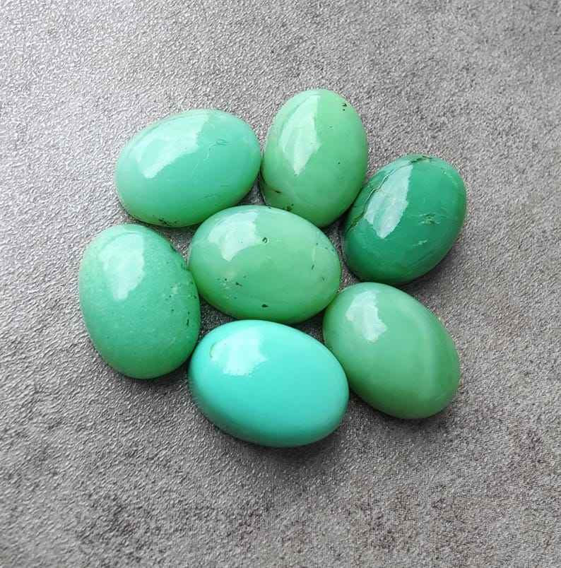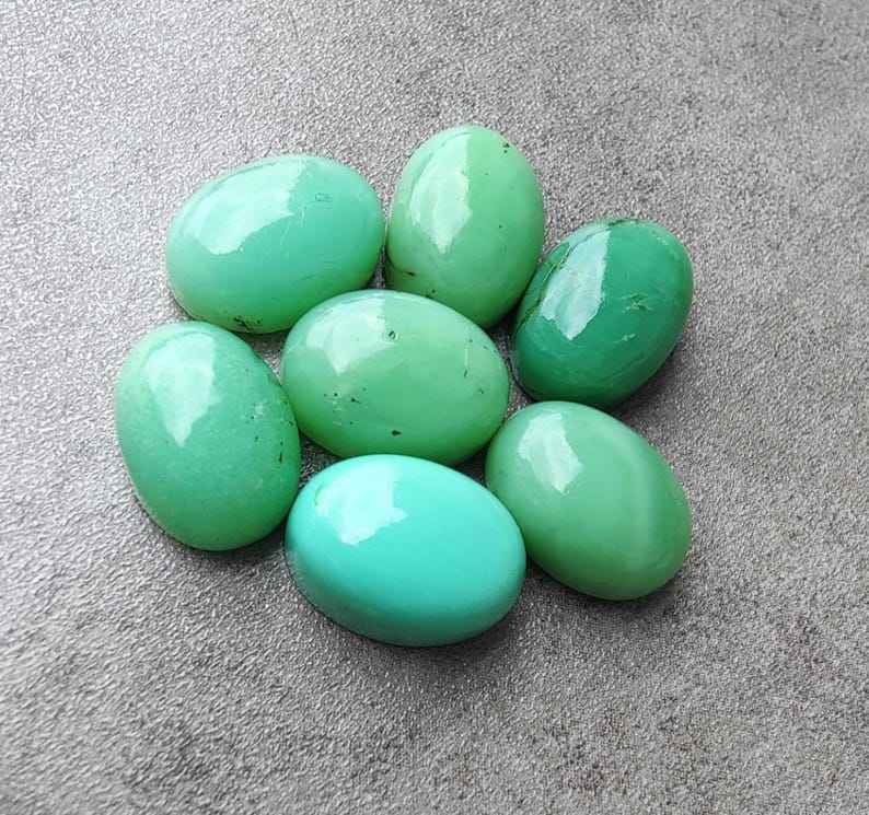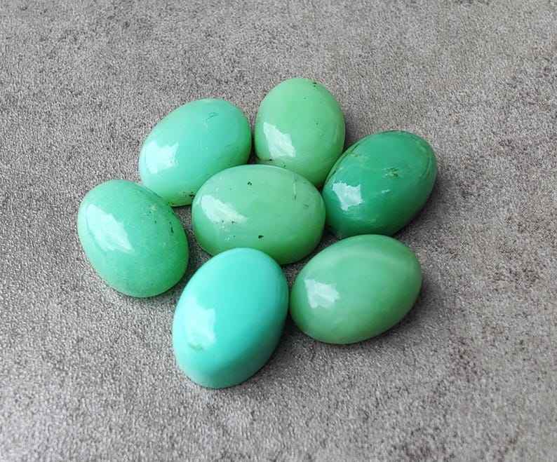 คริสโซเพรสทรงรีแบบคาโบชอง สีเขียวธรรมชาติ ผ่านการอบความร้อน หินเปลี่ยนสีได้ สำหรับทำเครื่องประดับ งานฝีมือ และของสะสม