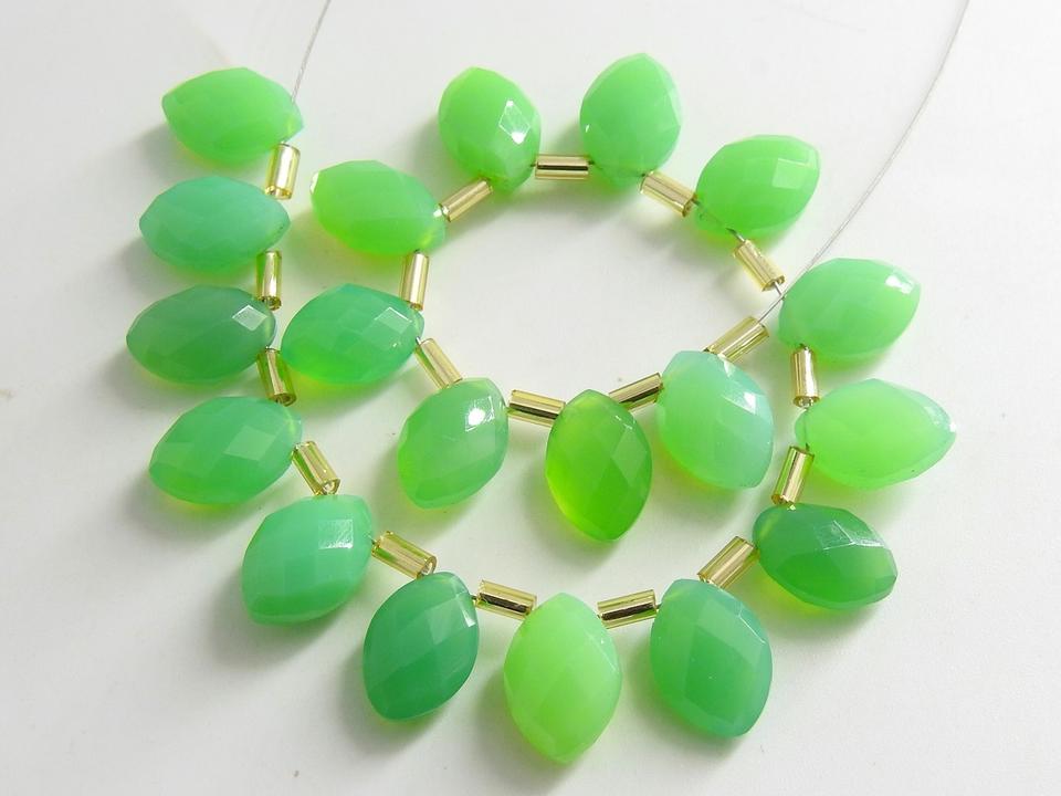 ลูกปัดหินเคลือบสีเขียวคริสโซเพรสทรงมาร์คีส์เหลี่ยมเพชรพลอยขนาด 12x8 มม. ทำด้วยมือ รับรองโดยบุคคลที่สาม PME GemsBeads