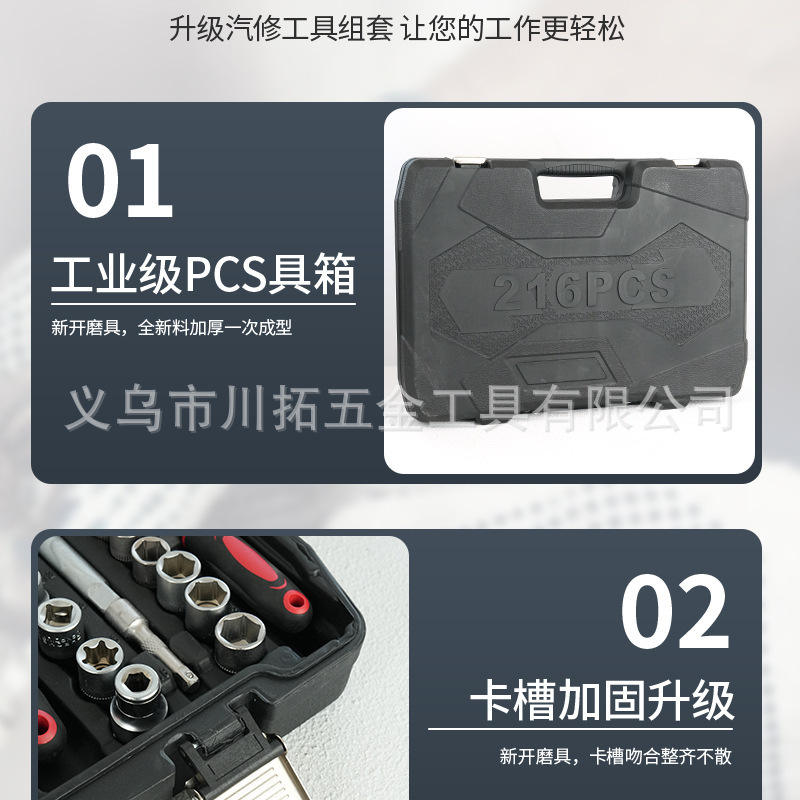 216-piece set, 24-tooth black box, red handle [horizontal plate]model