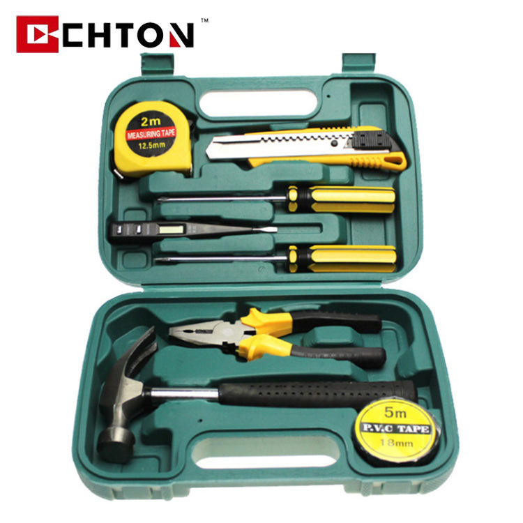 ชุดเครื่องมือฉุกเฉิน 9 ชิ้น ขนาด 20 ซม. สีเขียว ทำจากเหล็กกล้าคาร์บอน สำหรับซ่อมแซมรถยนต์และบ้าน พร้อมไขควง ค้อน คีม และเทป