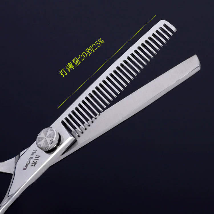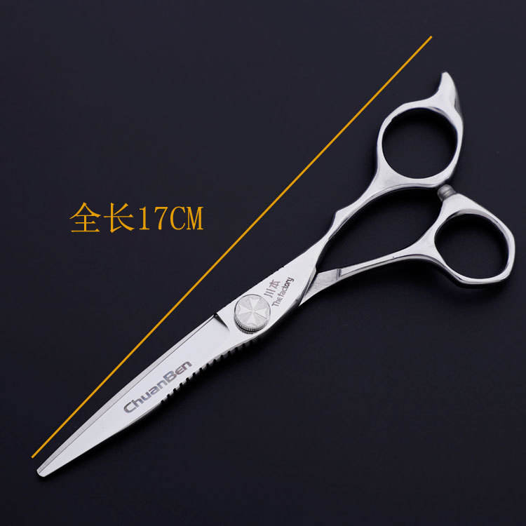กรรไกรตัดผมมืออาชีพชวนเปิ่น 30 ฟัน กรรไกรตัดผมสแตนเลสแบบแบน สำหรับคนถนัดขวา สีเงิน