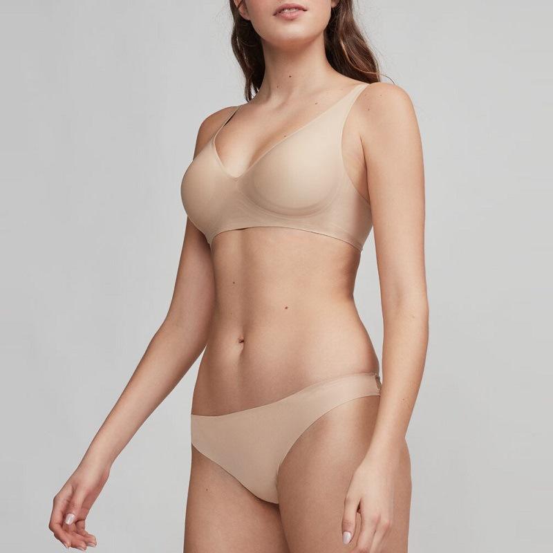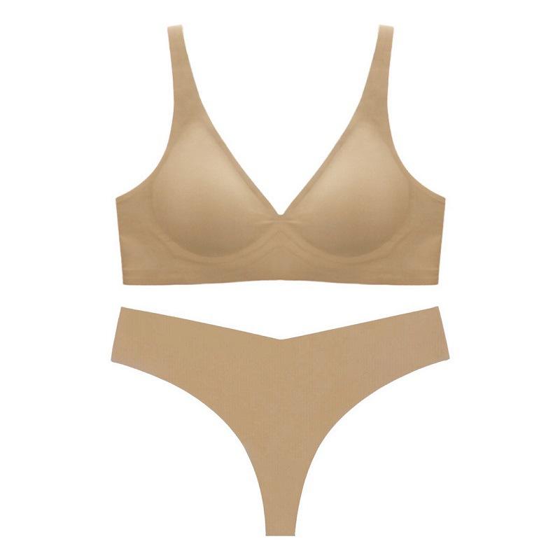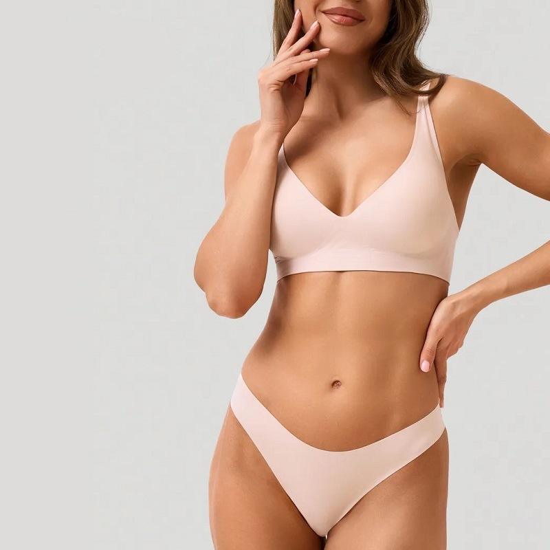 ชุดชั้นในไร้รอยต่อ Chuangerm OEM สำหรับผู้หญิง แบบบาง ไร้โครง ใส่สบาย นุ่ม รองรับทรง เซ็กซี่ ชุดชั้นในแบบวีคอ บราและกางเกงใน