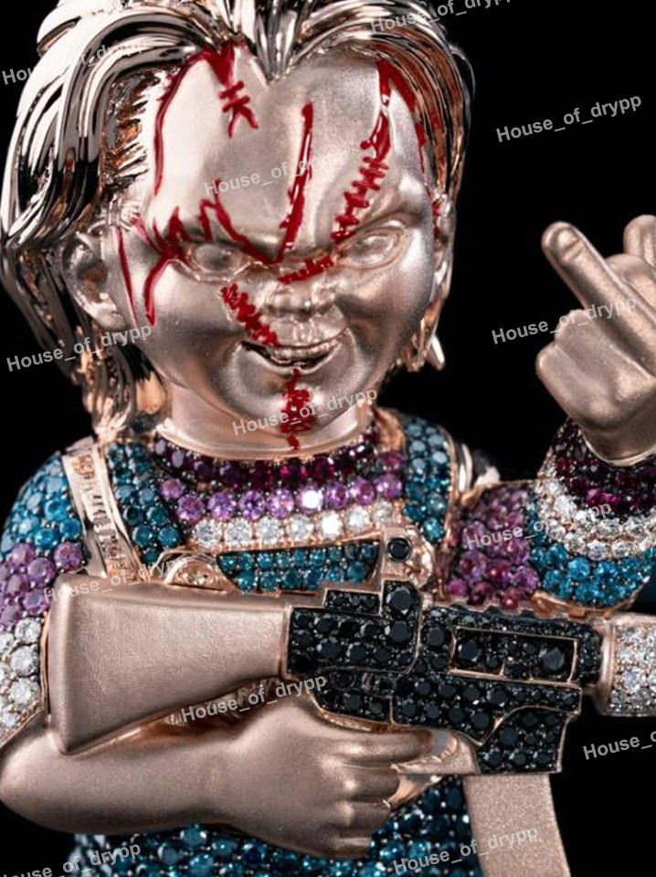 จี้ตุ๊กตาชัคกี้ประดับเพชรโมอิสซาไนต์ ชุบเงินแท้ 925 สไตล์ฮิปฮอป สร้อยคอแฟชั่นสุดหรูแนวสยองขวัญ
