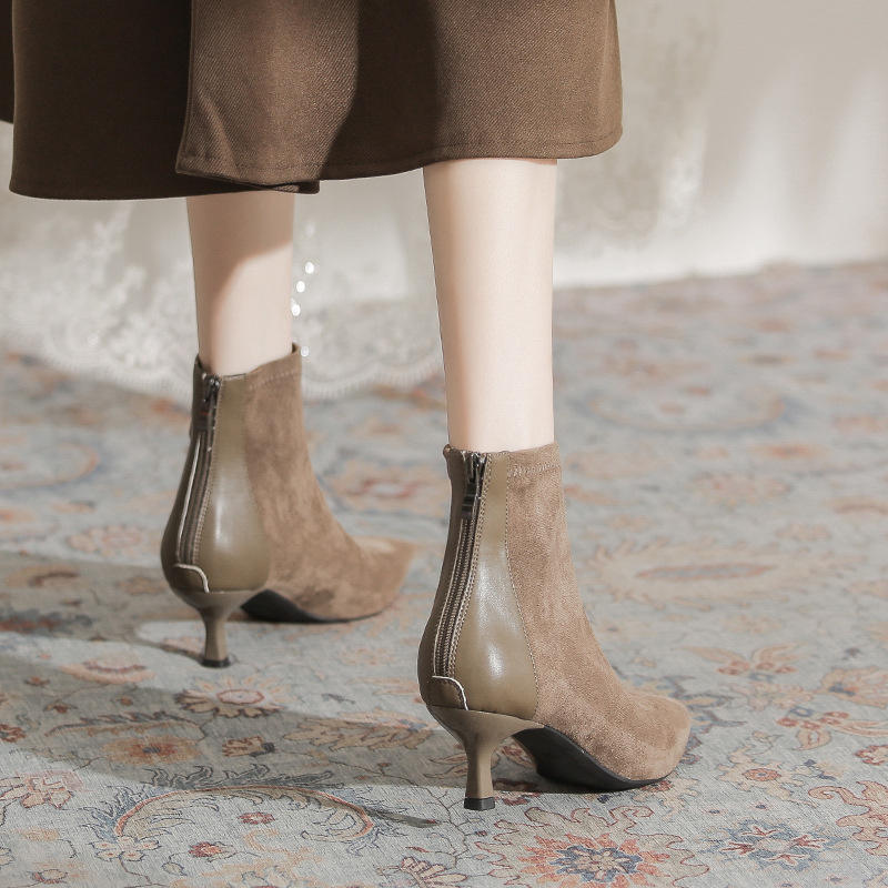 รองเท้าบูทหุ้มข้อหนังแท้ทรงสลิม ส้นสูงแบบหนา ดีไซน์ทันสมัย ใช้งานได้หลากหลาย สวยสง่า เหมาะสำหรับฤดูใบไม้ร่วงและฤดูหนาว