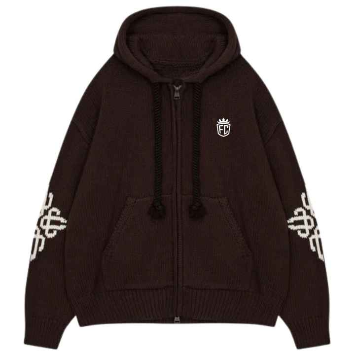 เสื้อฮู้ดไหมพรมหนานุ่มปักโลโก้สีน้ำตาลช็อกโกแลต ซิปหน้า ดีไซน์ทันสมัย ใส่สบาย เหมาะสำหรับทุกวัน