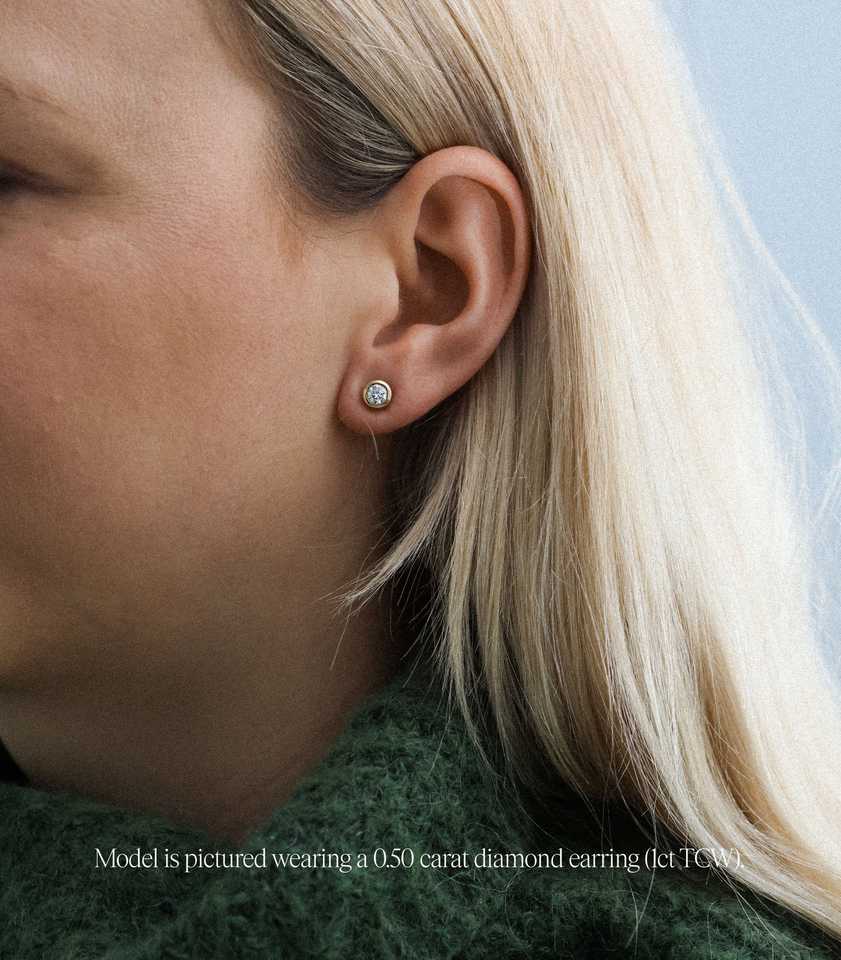 ต่างหูทรงกลมหนาประดับเพชรแล็บโกรว์ 0.5 กะรัต ดีไซน์แบบฝังขอบ ตัวเรือนทองคำขาว 9K 18K และแพลตตินัม