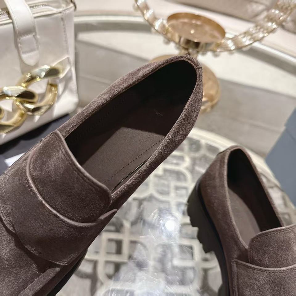 รองเท้าลำลองพื้นหนาหนังกลับสไตล์เรโทรอังกฤษแบบสวมไม่มีเชือกผูก ดีไซน์เนอร์ รองเท้าเดินสบายๆ สไตล์ลำลอง