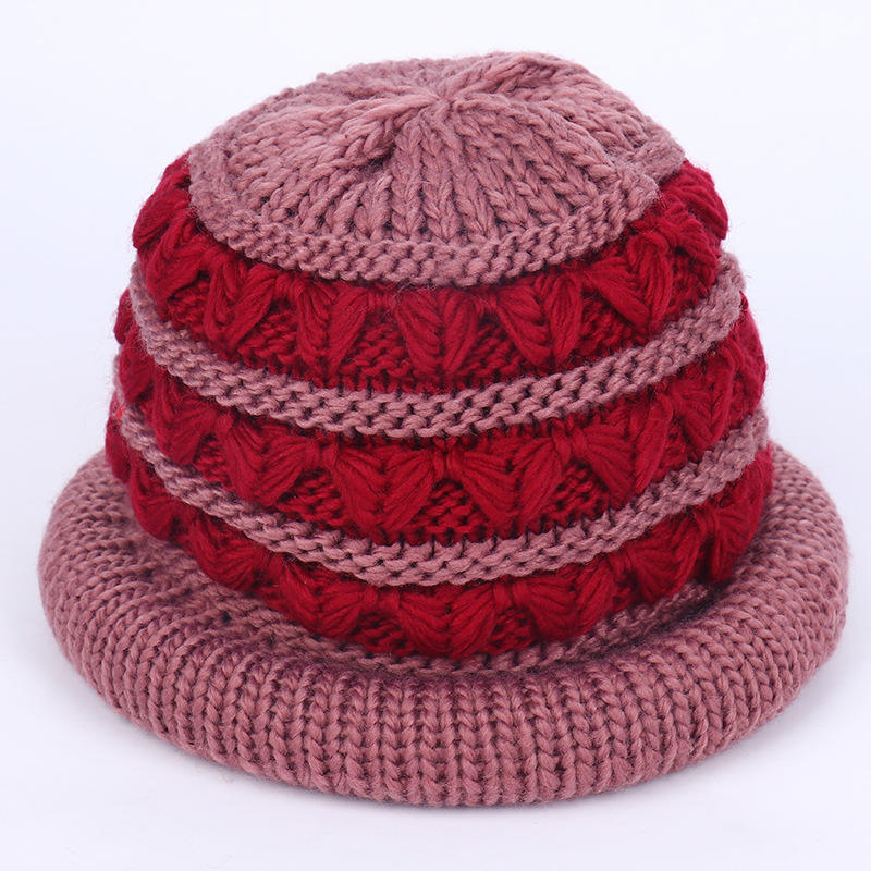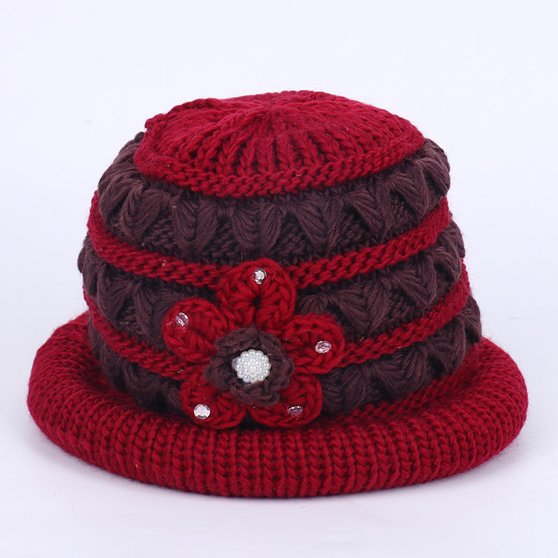 หมวกไหมพรมลายดอกไม้สำหรับผู้หญิง หมวกบอนเน็ตบุขนแกะอุ่นๆ สำหรับฤดูหนาว ขนาด 56-58 ซม. หมวกผสมอะคริลิก