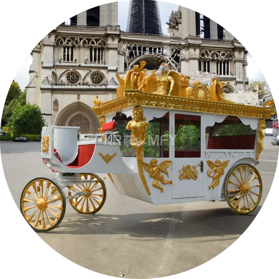 รถม้าชมวิวซินเดอเรลล่า แบบมีรูปปั้นประดับ 4 ล้อ สำหรับงานแต่งงานสุดหรู รองรับ 4-6 คน ยางตัน