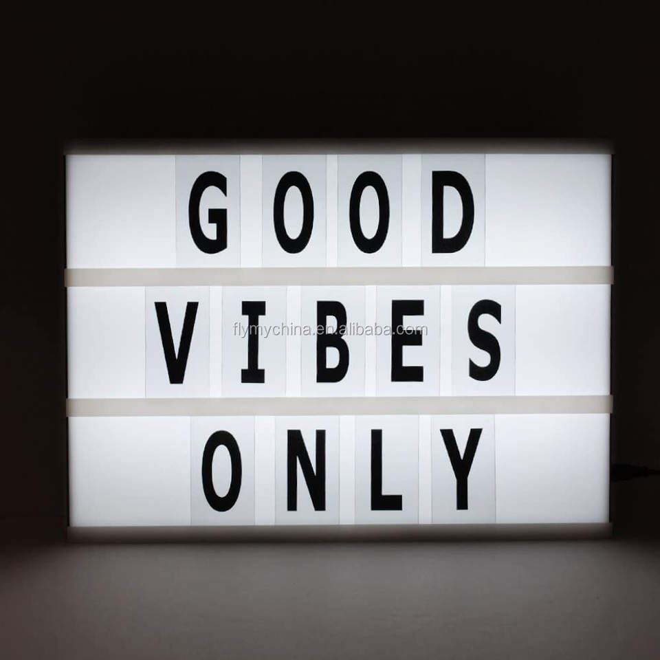 กล่องไฟโรงภาพยนตร์ขนาด A4สว่างขึ้นกล่องข้อความ LED ที่มี96ชิ้นตัวอักษรตัวเลขสัญลักษณ์สำหรับวันหยุด,วันเกิด,ตกแต่งงานแต่งงาน