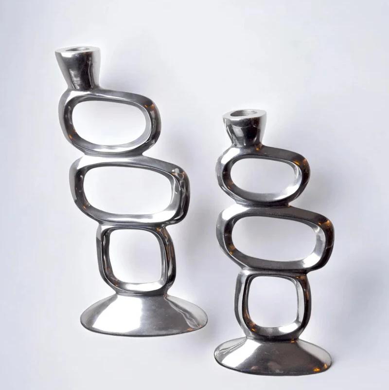 เชิงเทียนอะลูมิเนียมสีเงินดีไซน์วงกลมทันสมัยสำหรับตกแต่งบ้าน โรงแรม งานแต่งงาน