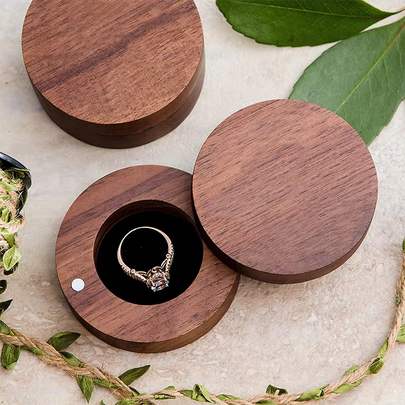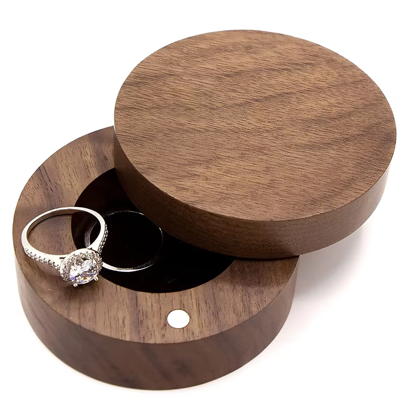 กล่องแหวนไม้วอลนัทวงกลมกล่องแหวนกลมวอลนัทกล่องแหวนไม้กลม