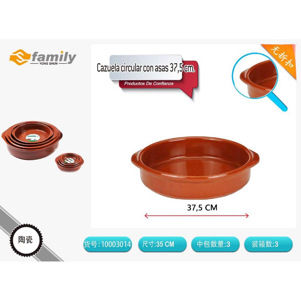 จานหม้อบอโรซิลิเกตทรงกลม38ซม. มีหูจับเครื่องครัวสำหรับทำอาหารซุปกล่องใส่โลโก้ได้ตามต้องการ