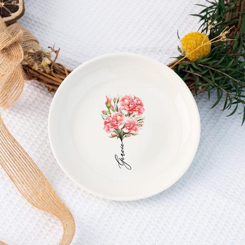 จานเซรามิครูปวงกลมสำหรับเก็บเครื่องประดับ สร้อยคอ ของขวัญวันเกิด ลายดอกไม้ แบบชิ้นเดียว สั่งทำได้ตามต้องการ ของใช้สำนักงานแบบคลาสสิก