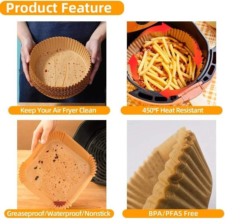 กระดาษรองทอดแบบวงกลม กระดาษรองทอดแบบใช้แล้วทิ้ง ถาดอบสำหรับหม้อทอดไร้น้ำมัน