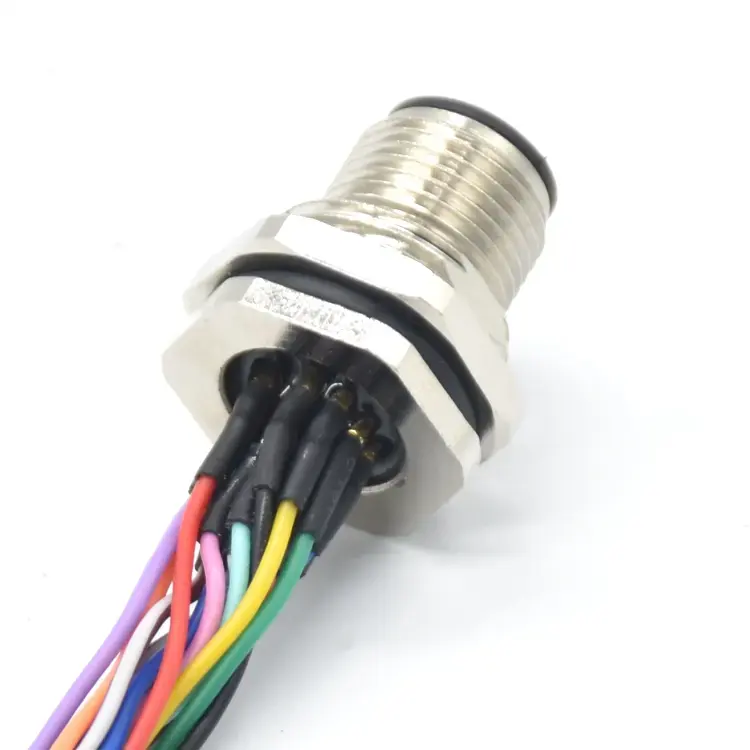 ขั้วต่อ M12วงกลมสายไฟฟ้า17pin แผงอุตสาหกรรมคอนเนคเตอร์สายเคเบิลซ็อกเก็ตตัวผู้ยึดด้านหน้า