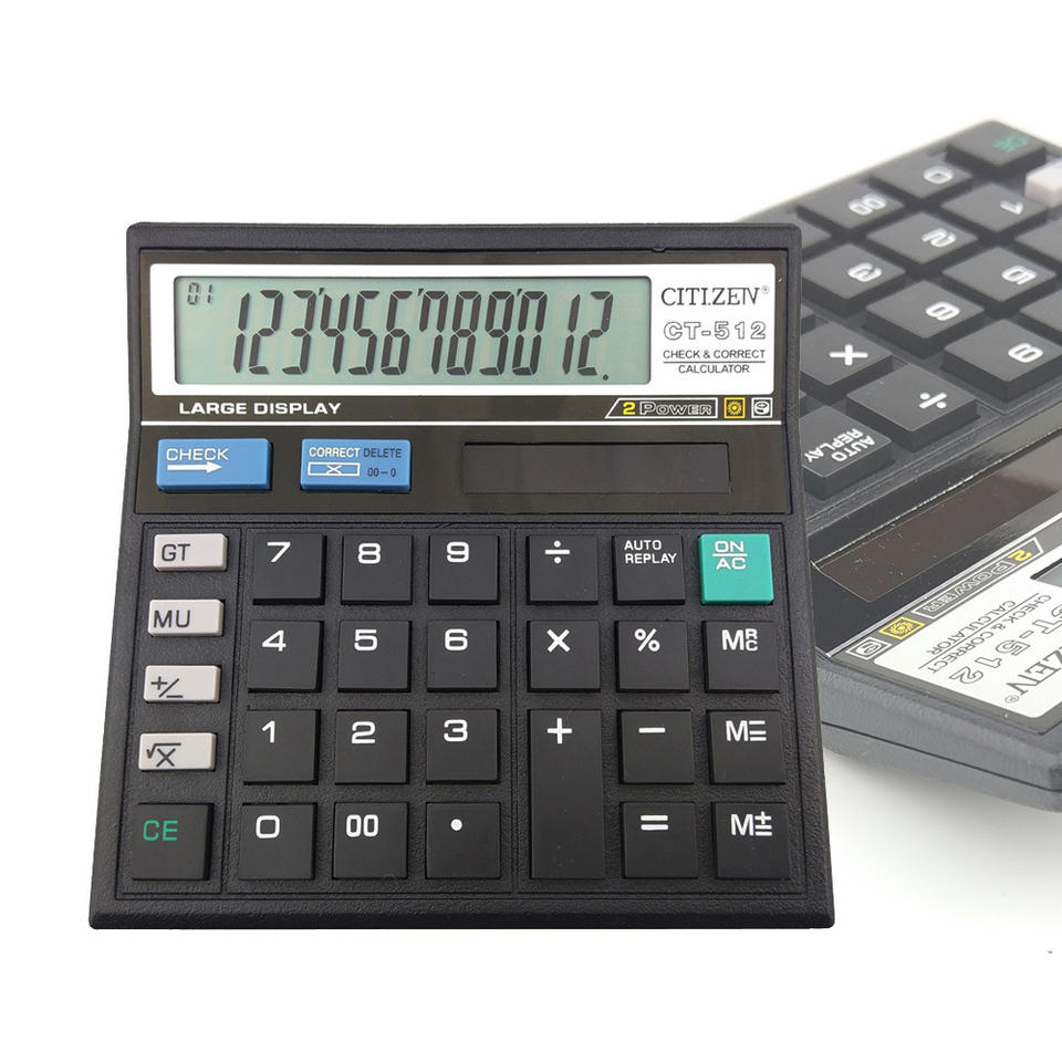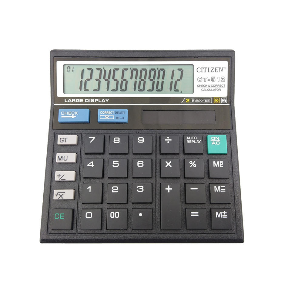 เครื่องคิดเลขตั้งโต๊ะ Citizen Ct-512 จอแสดงผลขนาดใหญ่ 12 หลัก ตรวจสอบฟังก์ชันที่ถูกต้อง สีดำ สำหรับใช้ในสำนักงาน