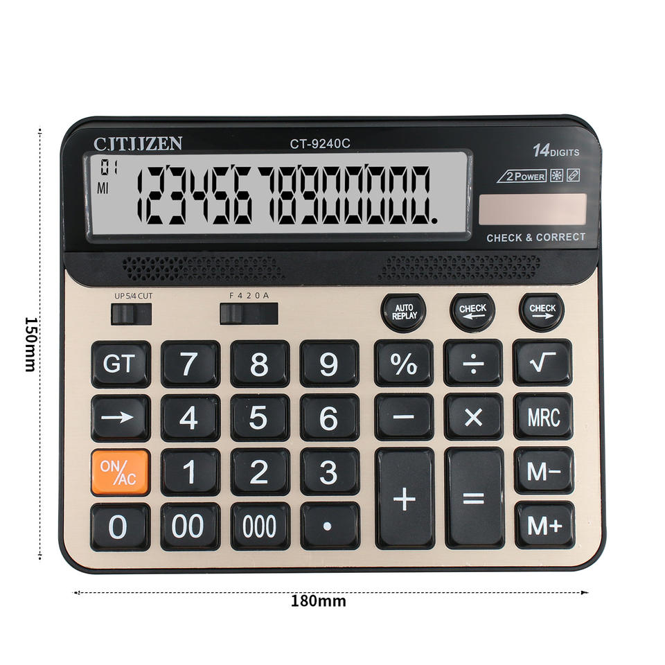 ซิติเซ็น ซีที-9240C เครื่องคิดเลขพลังงานแสงอาทิตย์ 14 หลัก แหล่งจ่ายไฟคู่ ใช้งานทั่วไป สำหรับสำนักงาน การเงิน