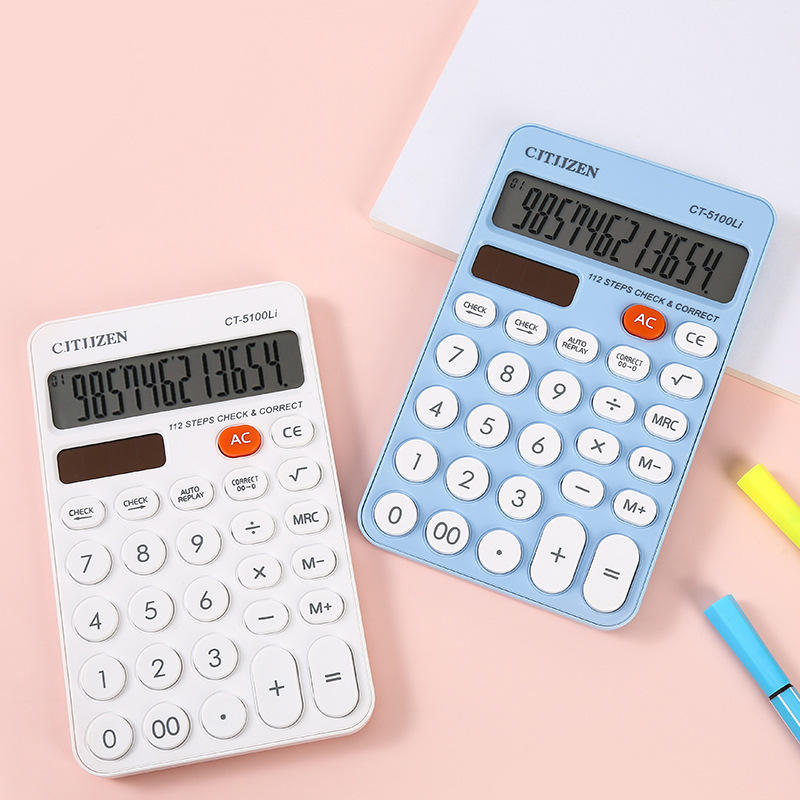 ซิติเซ็น ซีที 5100 ลีเครื่องคิดเลข 12 หลัก ใช้พลังงานจากแบตเตอรี่ สำหรับนักเรียน ใช้งานได้ทั่วไป ดีไซน์กะทัดรัด