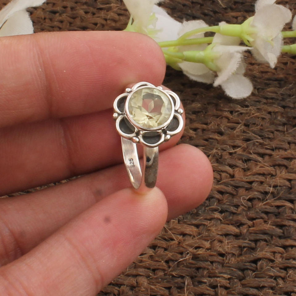 แหวนพลอยซิทรินทรงคลาสสิกประดับเงินสเตอร์ลิง สำหรับผู้หญิง ของขวัญเครื่องประดับสำหรับงานแต่งงานหรืองานเลี้ยง ประจำเดือนพฤศจิกายน