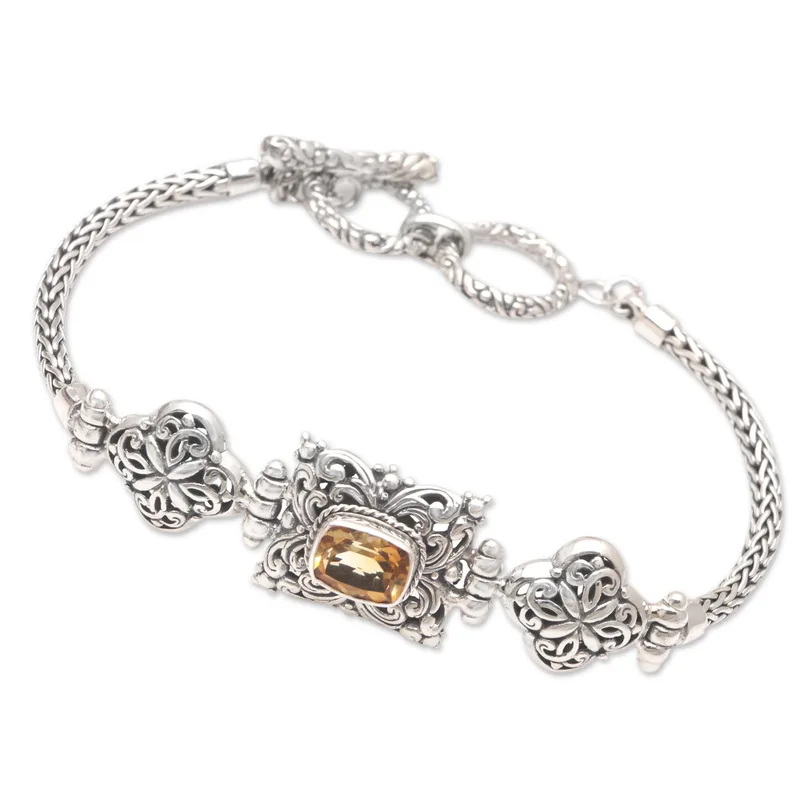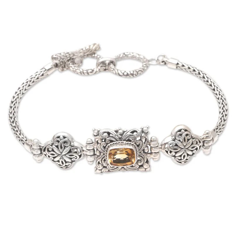 Citrine Bohemian Style Sterling Silver Pendant Bracelet Fashion Chain Link Bracelets India Christian Wedding Anniversary Jewelry