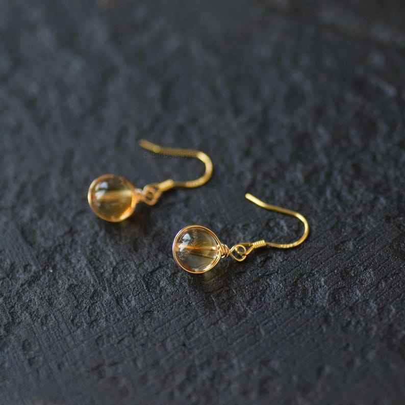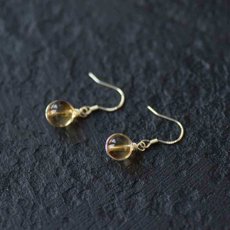 ต่างหูห้อยประดับพลอยซิทริน เงินแท้ 925 ชุบทอง 14k ของขวัญประจำเดือนพฤศจิกายนสำหรับเธอ