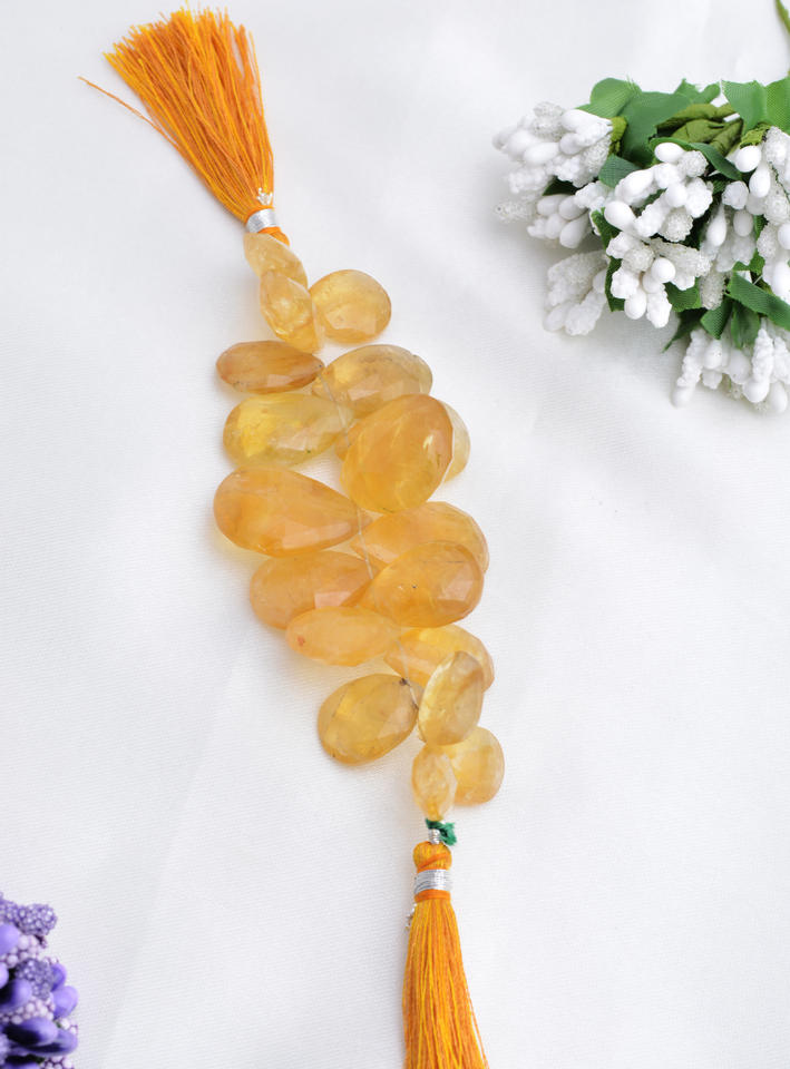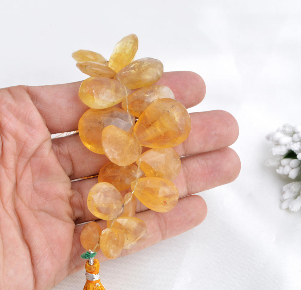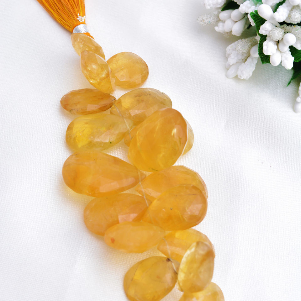 ลูกปัดซิทรินทรงหยดน้ำเจียระไน l ลูกปัดซิทรินทรงหยดน้ำเจียระไนธรรมชาติขนาด 4 นิ้ว สำหรับทำเครื่องประดับอัญมณีชั้นดี