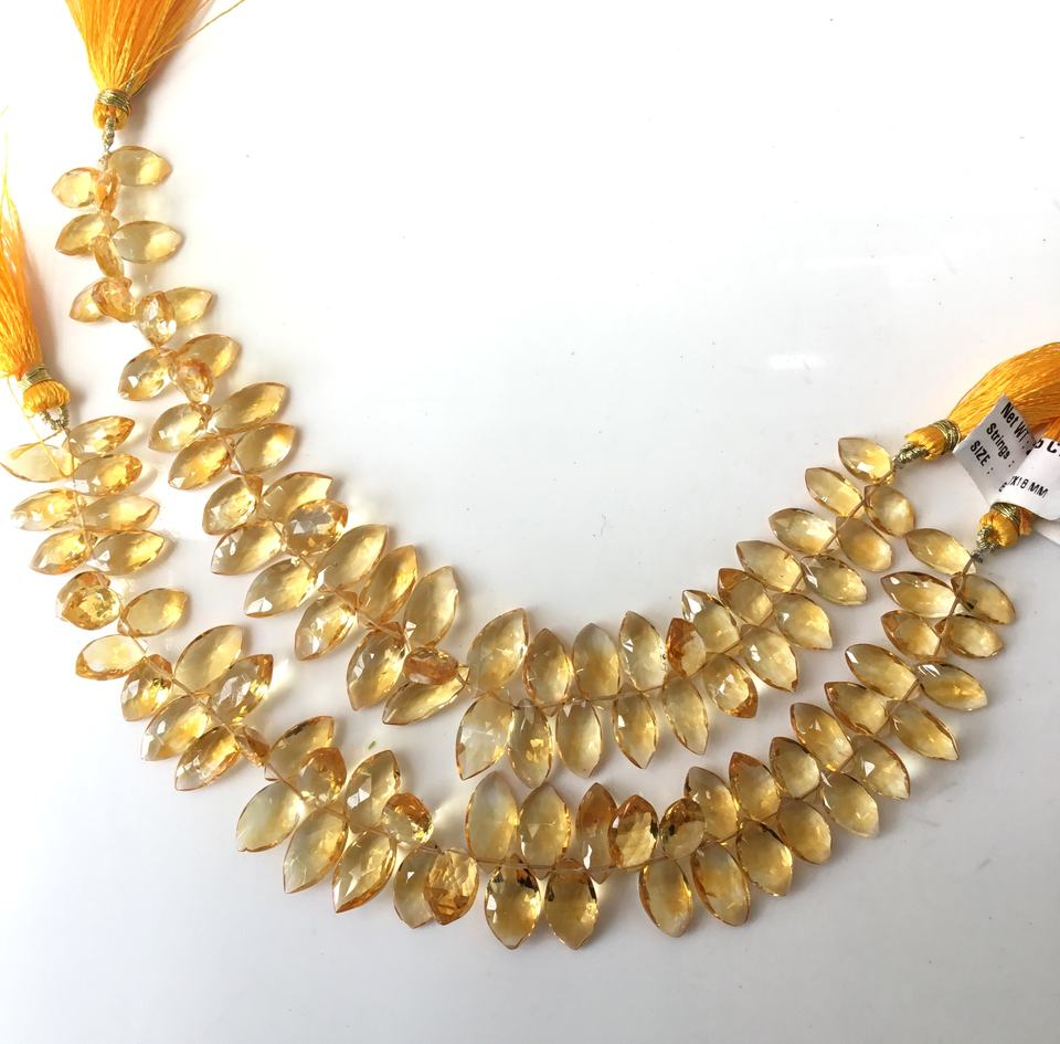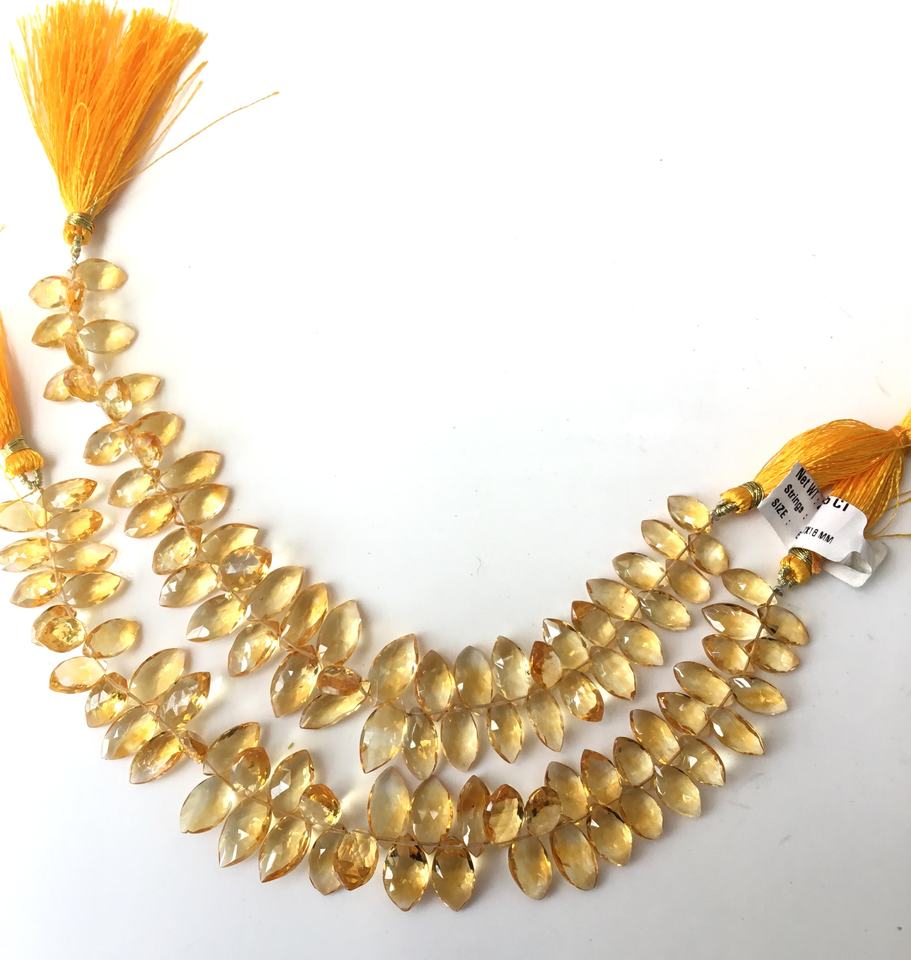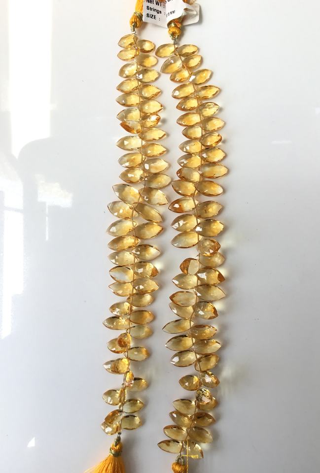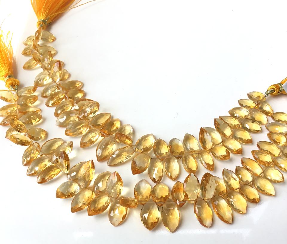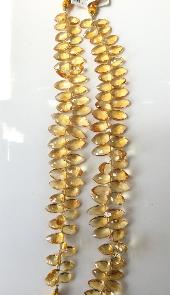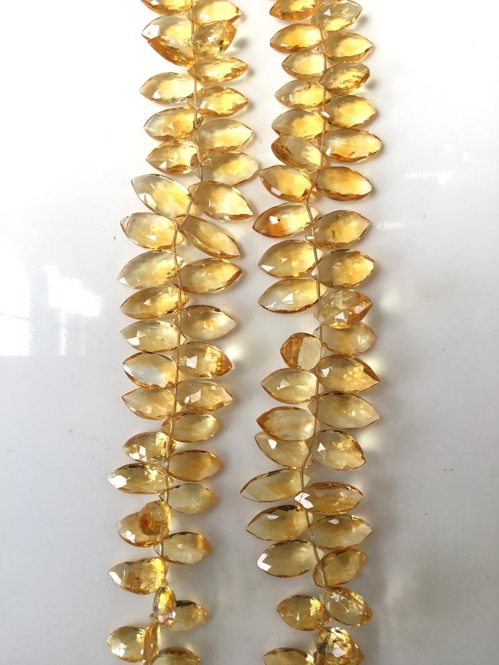 พลอยซิทรินสีเหลืองทรงมาร์คีส์เจียระไนสำหรับทำเครื่องประดับชั้นดี ขนาด 8x12-7x18 มม. น้ำหนักประมาณ 145 กะรัต