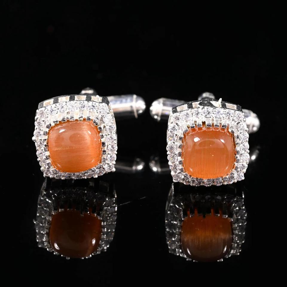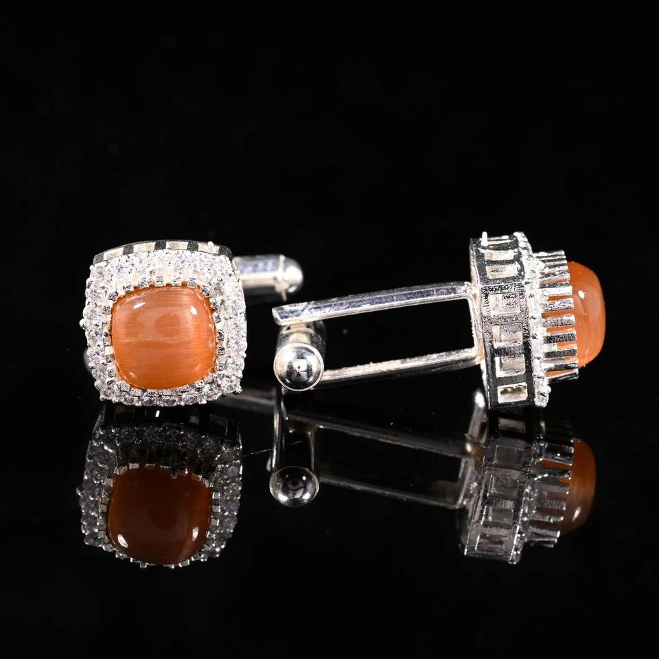 กระดุมข้อมือพลอยซิทริน เงินชุบโรเดียม ของขวัญสำหรับผู้ชาย สง่างาม เหมาะสำหรับงานแต่งงาน ธุรกิจ ชุดสูท ราฟาย พลอยสีน้ำตาล