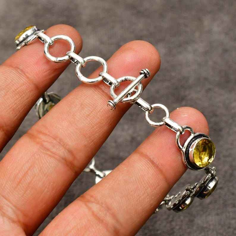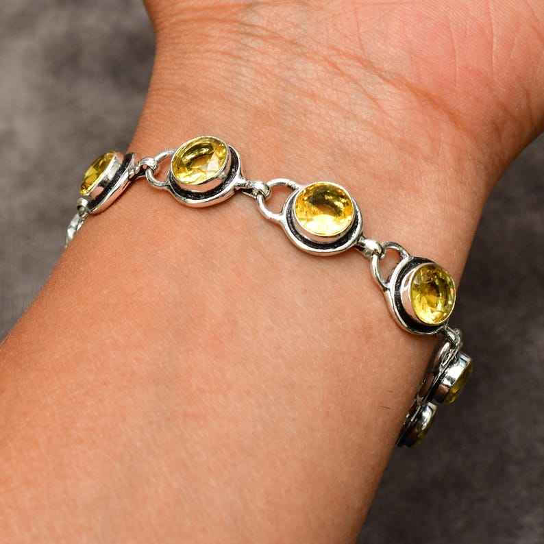 กำไลข้อมือทำมือจากเงินแท้ประดับพลอยซิทริน ของขวัญคริสเตียนสำหรับงานแต่งงาน/งานปาร์ตี้ สำหรับคุณแม่และผู้หญิง