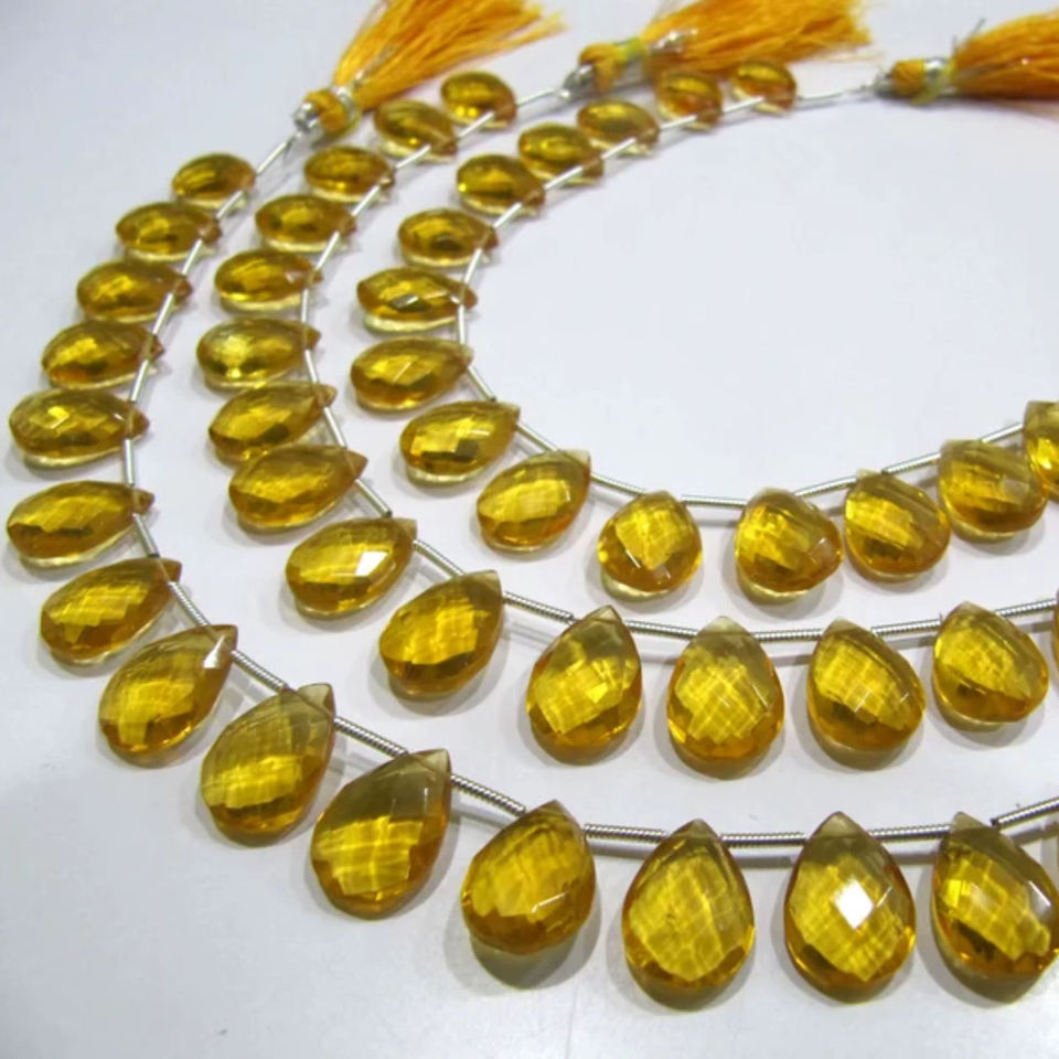ลูกปัดทรงลูกแพร์สีเหลืองขนาด8นิ้วพร้อมเม็ดบริโอเลตต์ขนาด10X14มม.