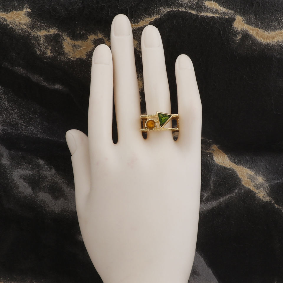 Citrine & Peridot Hydro QUARTZ ดีไซน์เนอร์แหวนทองเหลืองชุบทองแหวนคู่แบบปรับได้สไตล์โบฮีเมียน