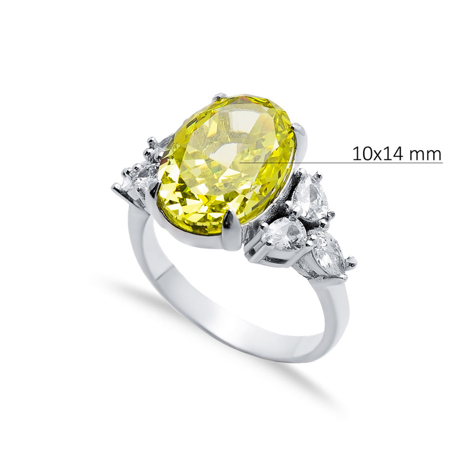 Citrine Quartz CZ Stone Oval Design Cluster Zircon 925 Sterling Silver Ring Wholesale Turkish Jewelry