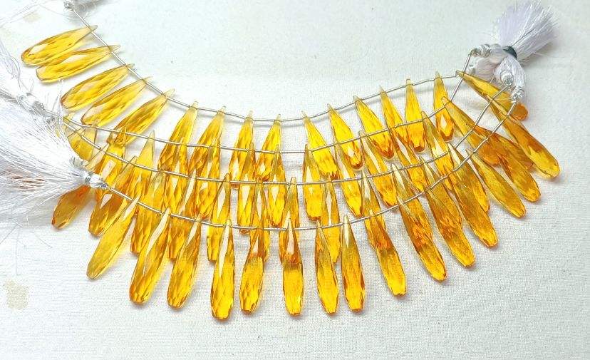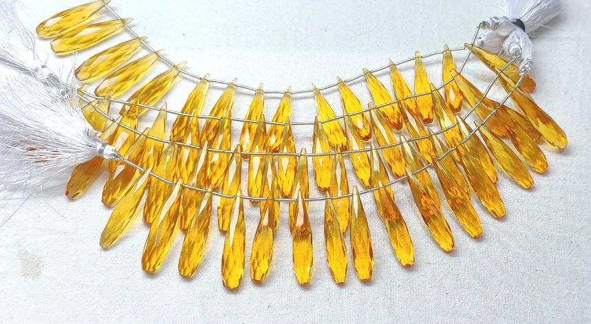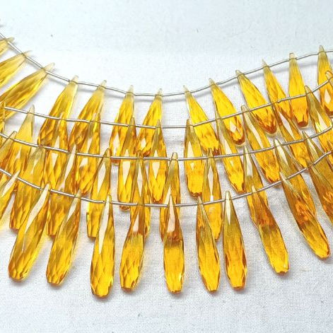 ลูกปัดทรงลูกแพร์เหลี่ยมเพชรพลอยควอทซ์ซิทรินขนาด6นิ้วหินสีเหลืองสำหรับเครื่องประดับ1เส้น