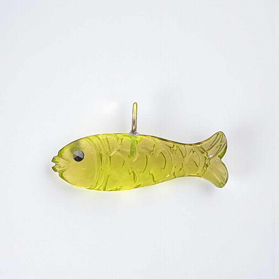 จี้ปลาควอทซ์ซิทรินทำมือแกะสลักปลาห่วงขนาด5มม. ชุบทอง925เงินซิทรินควอตซ์