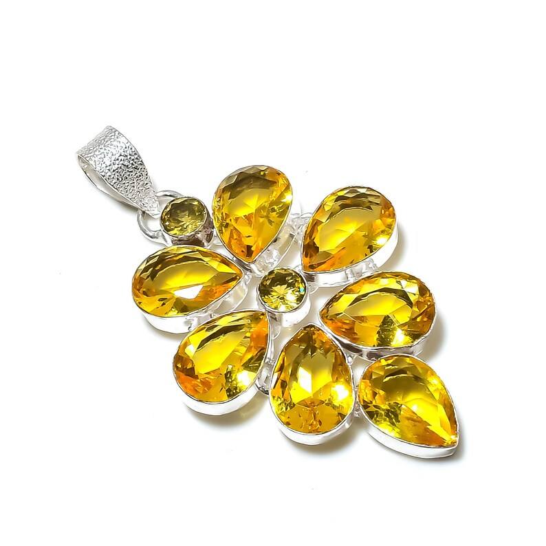 จี้สร้อยเงินสเตอร์ลิงรูป925พร้อมจี้อัญมณีสีเหลืองซิทรีนและเครื่องรางทางศาสนาของคริสเตียน