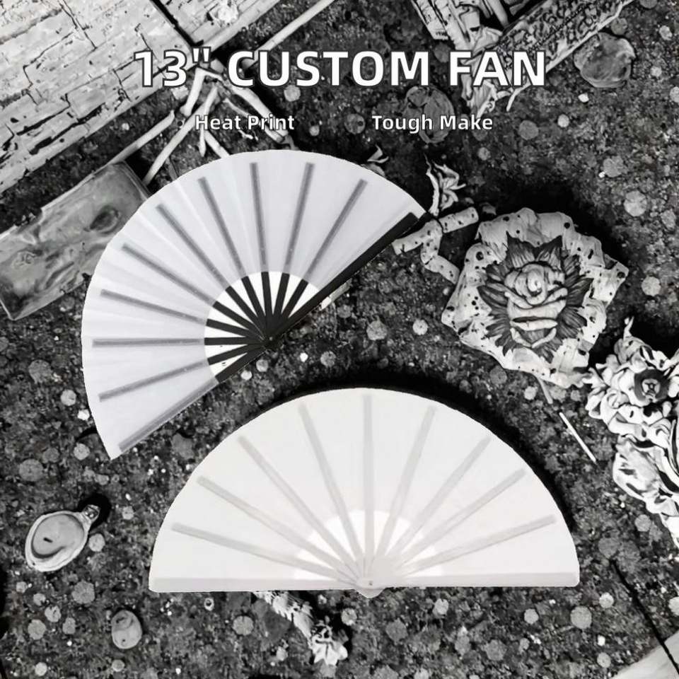 พัดโพลีเอสเตอร์ขนาด 13 นิ้ว แบบเปล่า สำหรับสกรีนโลโก้ ใช้สำหรับงานโปรโมชั่น ของขวัญต้อนรับทางธุรกิจ และของที่ระลึก