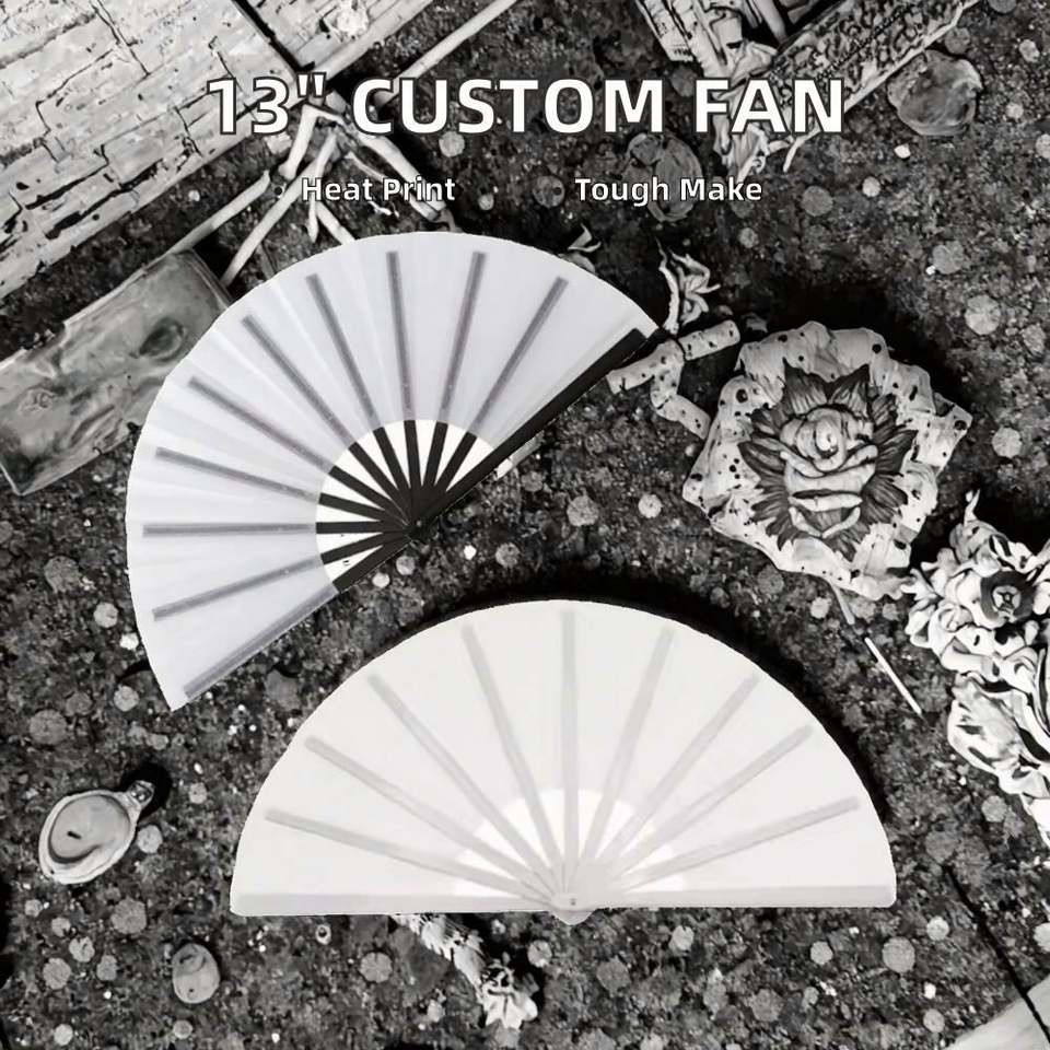 พัดมือโพลีเอสเตอร์สีขาวขนาด 13 นิ้ว ยี่ห้อ Clack สำหรับพิมพ์โลโก้ตามสั่ง เหมาะสำหรับงานส่งเสริมการขาย ของขวัญต้อนรับทางธุรกิจ และของที่ระลึก