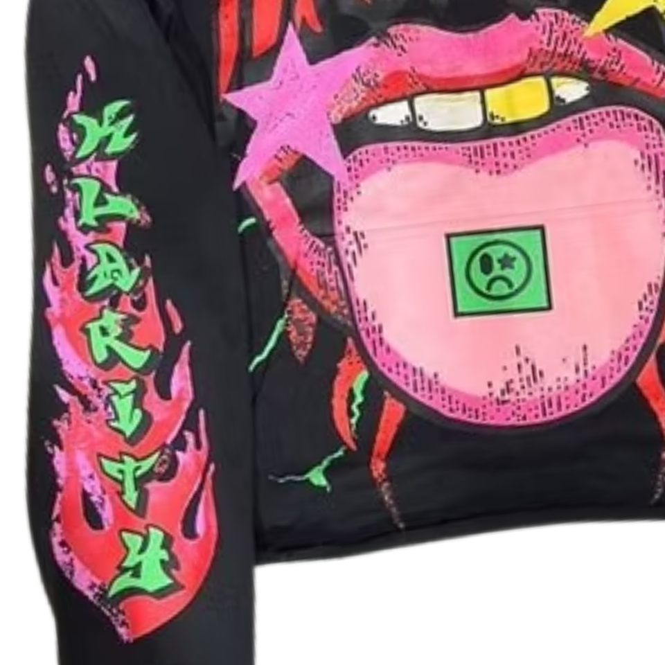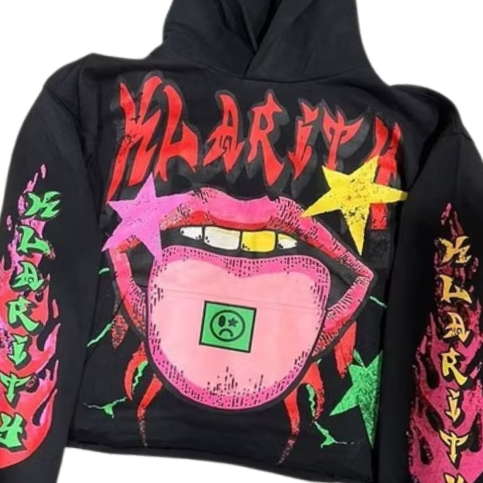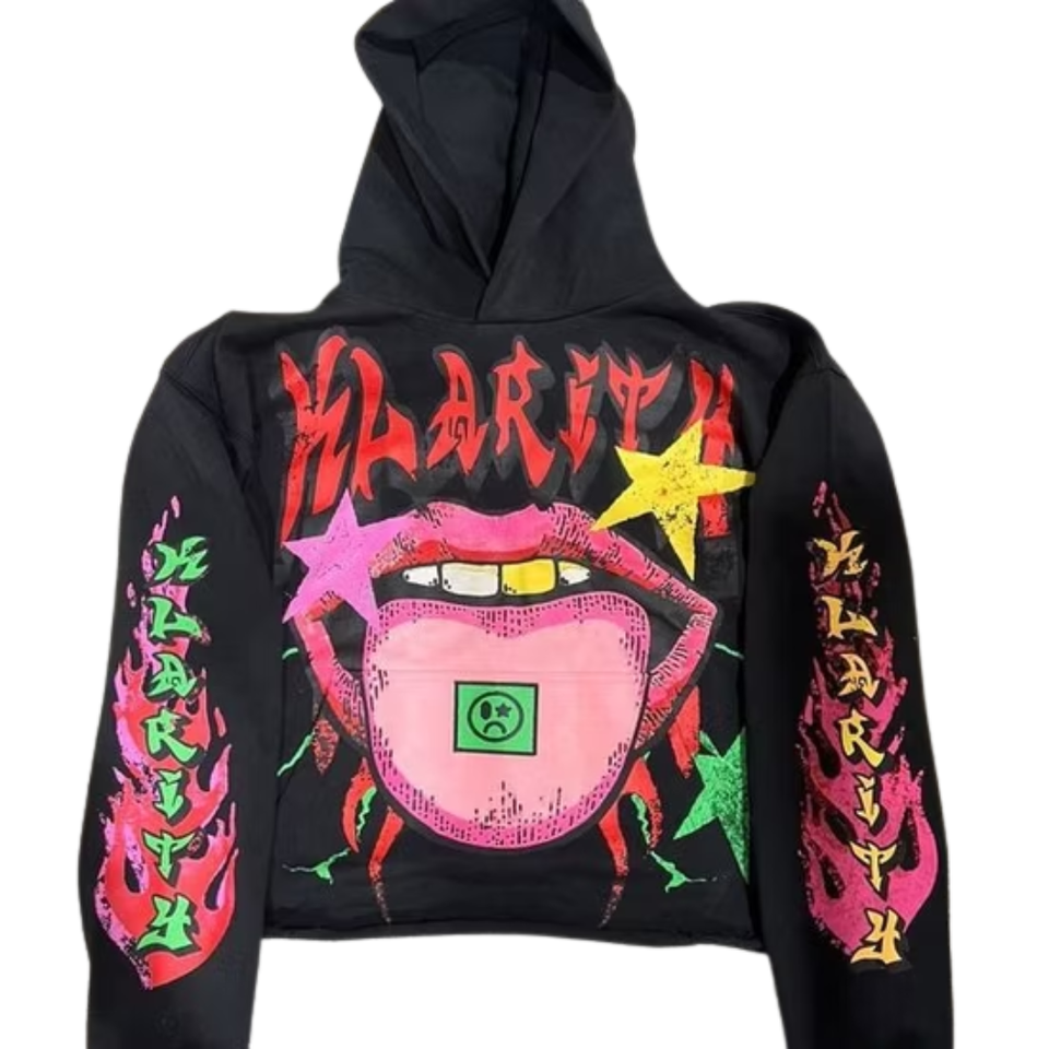 เสื้อมีฮู้ดลำลองชายหญิง, เสื้อมีฮู้ดลำลองไซส์ใหญ่อินเทรนด์พิมพ์ลายริมฝีปากนีออนมีฮู้ดแฟชั่น
