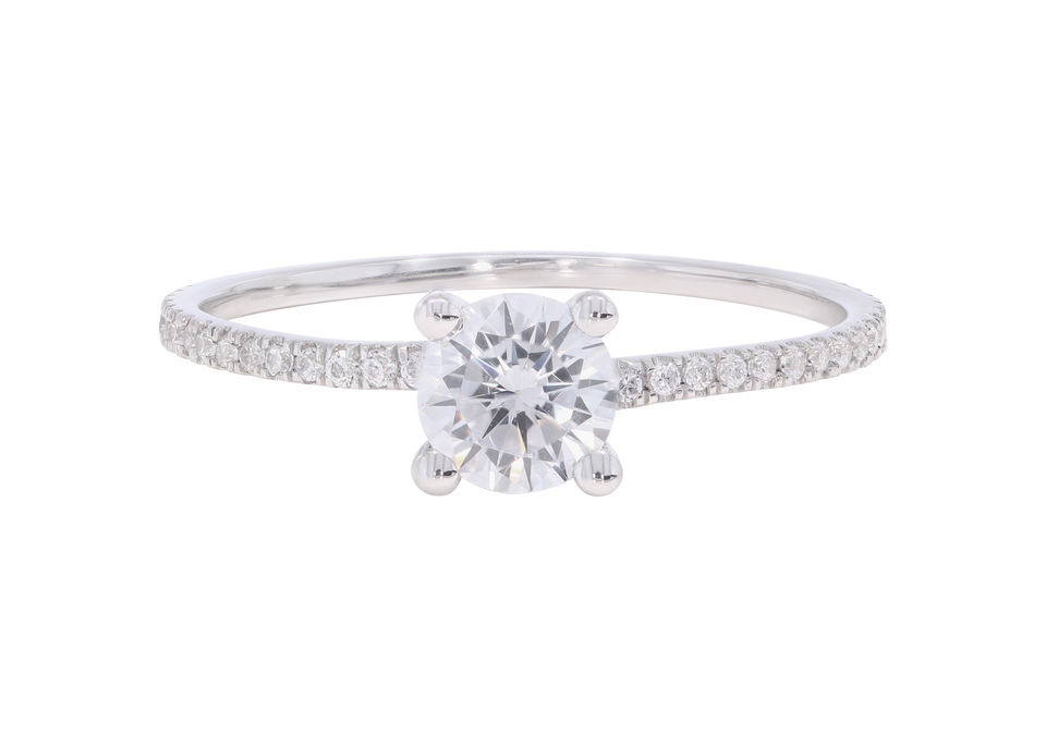 แหวนหมั้นเพชรแบบโซลิแทร์สำหรับปลูกในห้องปฏิบัติการ VVS 1.00 CT 14K สีขาวทองพร้อมเน้น-OEM ขายส่ง
